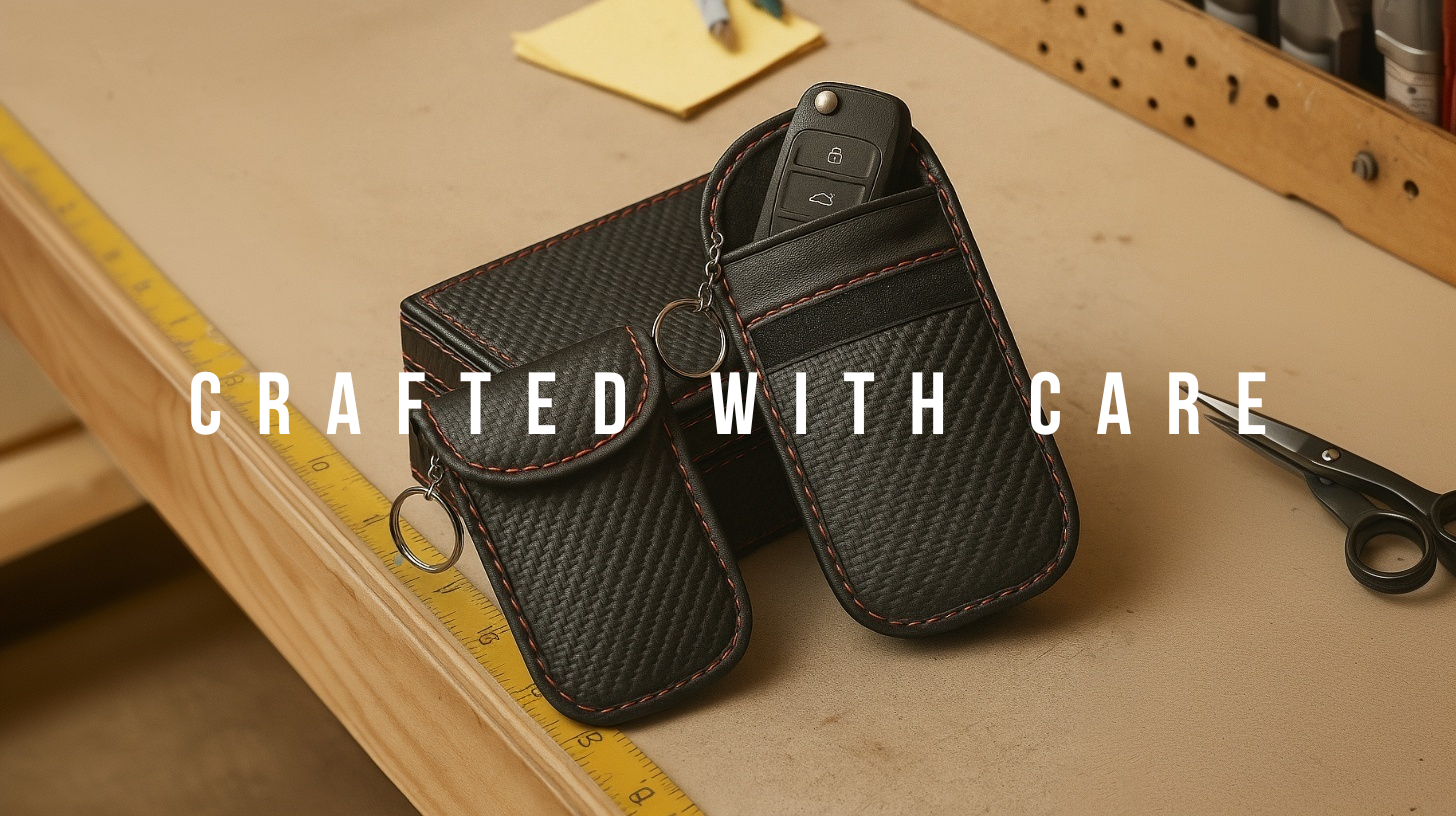 Every SignalShield™ is crafted with precision using premium materials on the outside and advanced shielding fabric inside. To guarantee quality, each piece is carefully finished by hand.